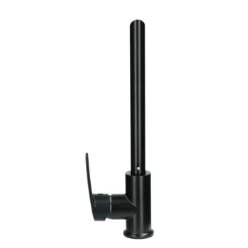 De Absolut keukenkraan Fasso met hendel Zwart is een blikvanger in je keuken met de hoge hoekige U-vormige uitloop. De strakke vormgeving en mat zwarte afwerking passen perfect in jouw landelijke of industriële keuken. De kraan kun je ook verkrijgen in chroom of grafiet. Met de kraan ga je ook in de tijd mee door de ingebouwde waterbespaarder in de sproeikop. Zo bespaar je op je waterverbruik. Dat is niet alleen goed voor het milieu, maar ook voor je portemonnee. De hoogte van maar liefst 48 cm in combinatie met de 360° draaibaarheid van de uitloop zorgen dat je veel ruimte in je gootsteen hebt. Handig als je een grote pan moet vullen! Met de eenhendelbediening meng je eenvoudig met 1 hand het water naar de gewenste temperatuur. De keramische schijven maken draaien soepel en nauwkeurig en vergen bovendien weinig onderhoud. Ook veeg je kalk eenvoudig met je vingers van de uitloop af doordat vuil en kalk zich niet makkelijk hecht aan de siliconen noppen in de sproeikop. Met de meegeleverde flexibele aansluitslangen en bevestigingsmateriaal sluit je deze kraan eenvoudig zelf aan. Op de kraan krijg je 5 jaar garantie.