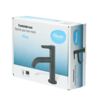 De Atlantic fonteinkraan Riley met hendel Zwart bestaat uit een zwarte fonteinkraan van 12,2 cm hoog, bevestigingsmateriaal en montagehandleiding. De Riley fonteinkraan heeft een handige eenhendelbediening, waarmee je eenvoudig de kraan aan zet. De kraan heeft een diepte van slechts 10,2 cm en is daarmee uitermate geschikt voor gebruik in het toilet. De mat zwarte afwerking geeft de tijdloos vormgegeven kraan een robuuste uitstraling. Gebruik alleen water en een zachte doek om de kraan schoon te maken. Gebruik geen schurend, bijtend, azijnhoudend of agressief schoonmaakmiddel. Besluit je deze kraan te kopen? Dan heb je 5 jaar garantie.