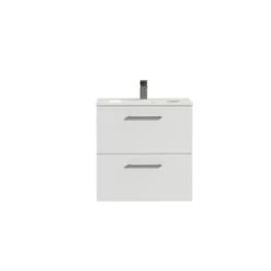 Tiger Studio Badkamermeubel 60 Cm Hoogglans Wit Met Wastafel Polybeton Mat Wit Greep Rvs Afgerond