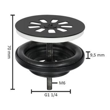 Breng je fonteinset in je toiletruimte in één stijl met de afvoerpluggen van Differnz! De fonteinplug monteer je eenvoudig. De Differnz afvoerplug voor fontein mat zwart heeft een diameter van 65 mm een hoogte van 70 mm en het schroefdraad heeft de maat M6. De afdichtingsringen voorkomen dat er lekkages ontstaan. Het messing materiaal heeft een mat zwarte afwerking.