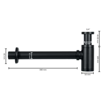 Breng je fonteinset in je toiletruimte in één stijl met de sifons van Differnz! Deze prachtig vormgegeven bekersifon monteer je eenvoudig. Het afvoer heeft een diameter van 5/4″ en de afvoerbuis is 32 mm in doorsnede. Vanwege zijn mooie vormgeving en mat zwarte afwerking, combineer je de Differnz sifon mat zwart goed met een vrij hangende wastafel of fontein.