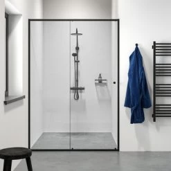 De Schuifdeur voor nis Contour Zwart 140x200cm is een schuifdeur met een minimalistisch kader en is in matzwart afgewerkt. De schuifdeur heeft 6mm dik veiligheidsglas en is voorzien van een antikalk laag. Dankzij deze laag blijft het glas nog langer mooi helder. De Schuifdeur voor nis Contour Zwart 140x200cm is deel van de Contour serie. Liever een draaideur of een inloopdouche? Ook deze kun je vinden op onze website. Ook andere zwarte accessoires om de badkamer compleet te maken, zijn te vinden op onze webshop.