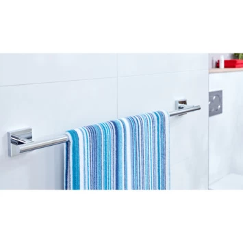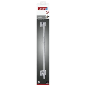 De tesa® Ekkro handdoekhouder in hoogglans verchroomd metaal heeft een aantrekkelijk en praktisch design. Hij is te bevestigen zonder boren of schroeven dankzij de unieke tesa® Power.Kit technologie. Monteren is heel eenvoudig: 1) Plak de adapters op de muur en vul deze met de tesa® Power.Kit-lijm 2) Laat vervolgens de lijm 12 uur uitharden 3) Schroef de handdoekhouder op beide adapters. Alle benodigde materialen zijn in de verpakking bijgesloten: handdoekhouder enen adapterset. Deze elegante houder voor handdoeken heeft een tijdloos design. De houder kun je eenvoudig zonder lijmresten en beschadiging verwijderen en daarna opnieuw bevestigen met een adapter set BK20-2, welke ook los te koop is. Geschikt voor tegels, metaal, natuursteen, marmer, beton, hout, glas en vele soorten kunststof. Niet geschikt voor behang, stucwerk en andere oppervlakken met een antikleeflaag. Er zijn van deze Ekkro serie diverse sanitair accessoires verkrijgbaar, voor een complete look. Geef je badkamer een nieuwe stijl met Ekkro.