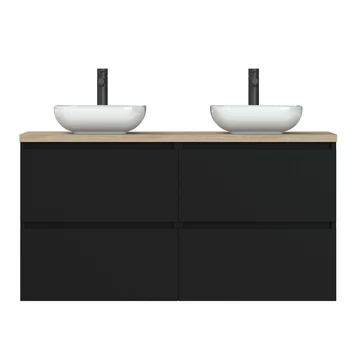 Tiger Karlo Badkamermeubel 120cm Mat Zwart Met Eiken Wasblad En Keramische Waskom
