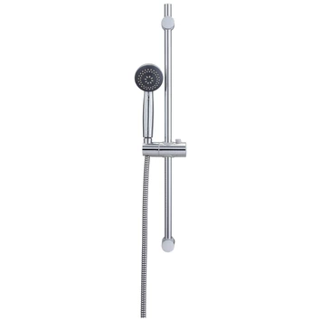 De doucheset Valencia van Tiger bestaat uit een handdouche, doucheslang en -stang met handdouchehouder en verstelbare muursteunen. De handdouche met een diameter van 7,5 cm heeft 3 straalstanden. Door de toepassing van Neoperl® technologie bespaar je tot 40% water. Deze technologie zorgt er met een dynamische o-ring voor dat er altijd een constante hoeveelheid water doorgelaten wordt. Bij een hoge druk wordt veel water bespaard, bij lage druk wordt het comfort juist verhoogd door lucht toe te voegen aan het uitstromende water. Je bespaart dus water en je doucht altijd comfortabel. De douchekop draai je naar keuze naar de standen vol, bruisend of massage. Met de houder stel je eenvoudig de hoogte van de handdouche in. De ronde douchekop is uitgevoerd in chroom. Door de siliconen nopjes kan je kalk makkelijk met de hand afvegen. Doordat 1 muursteun verstelbaar is, kun je de set over je oude boorgaten vastschroeven. De doucheslang heeft een universele 1/2″aansluiting en past op elke douchekraan. Dit product is onderdeel van het Splash eco assortiment: een Tiger lijn met waterbesparende producten.